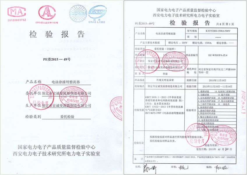 通過第三方國家電力電子技術(shù)中心對設(shè)備的全方面檢測,滿足JB/T8675所有技術(shù)性能要求。